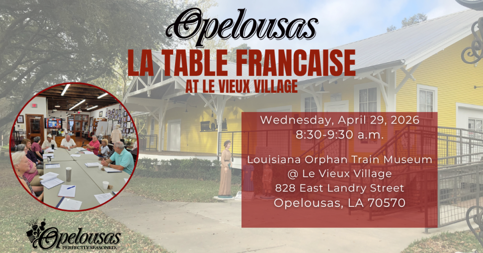 Local News La Table Francaise Bonjour, La Table Française des Opelousas meets on the last Wednesday of each month at…Freddie HerpinApril 21, 2026