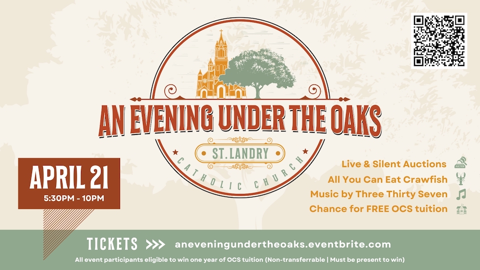 Events & ActivitiesCultureCommunity St. Landry Church Presents An Evening Under the Oaks April 21 An Evening Under the Oaks is happening on Friday, April 21 at 5:30PM!AdminApril 11, 2023