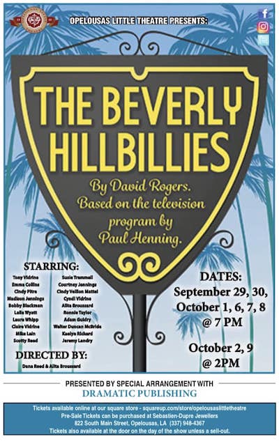 CultureEvents & ActivitiesCommunity Opelousas Little Theater Production of The Beverly Hillbillies Continues For those who are looking for some good local, family entertainment, tickets are still available…AdminOctober 2, 2022