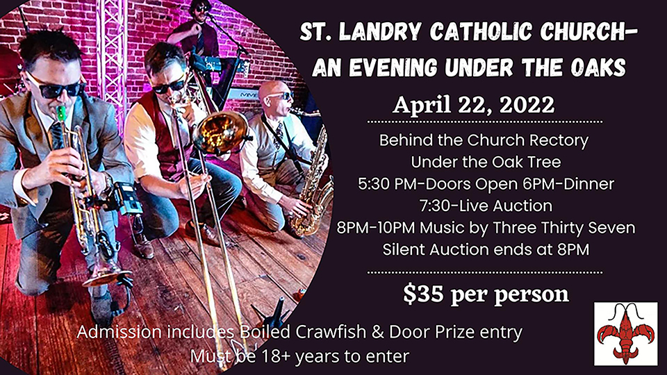 Map Unavailable Date/Time Date(s) - April 22, 20225:30 pm - 10:00 pm Location St. Landry Catholic Church Grounds Event Information