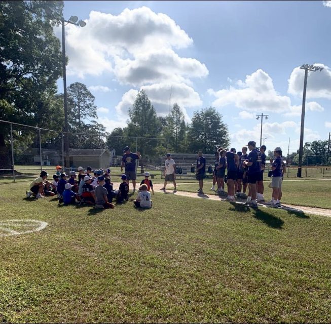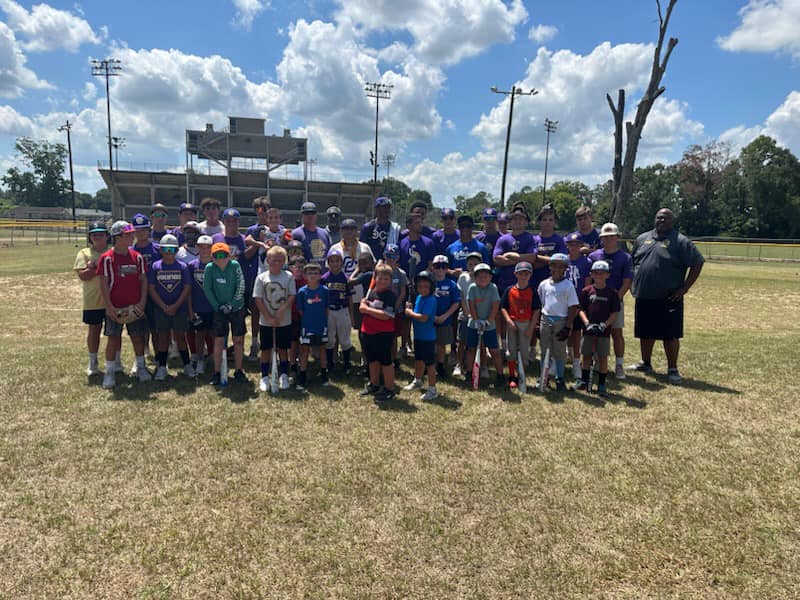 Opelousas Catholic head coach Justin Boyd, accompanied by the entire baseball team gave their time today to teach young baseball-enthusiasts the techniques and secrets of baseball. The event was open to all baseball players between the ages of 7 to 12 years, regardless of skill-level. Coach Boyd and his team players dedicated their Friday morning spending one-on-one time with those who attended.