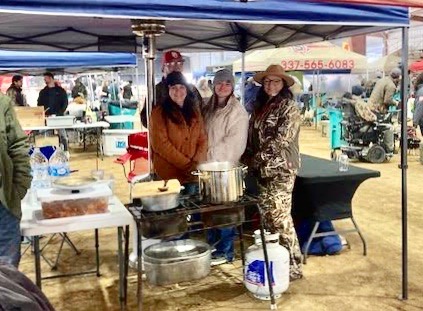 It was quite an appropriate day for ladling chicken or hen gumbo and sausage ingredients as near freezing temperatures bolstered by chilly wind gusts, sliced through the entrances of a dirt-floored arena filled with aromas of South Louisiana’s most prodigious cold weather dish.