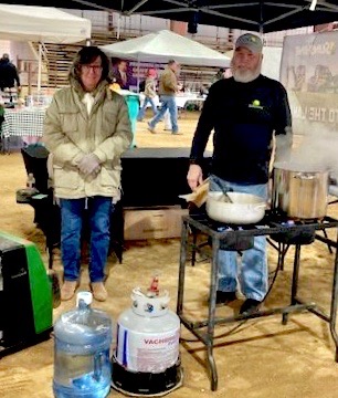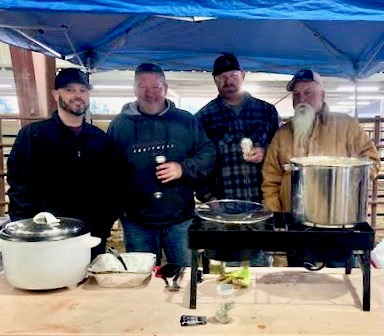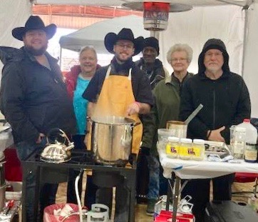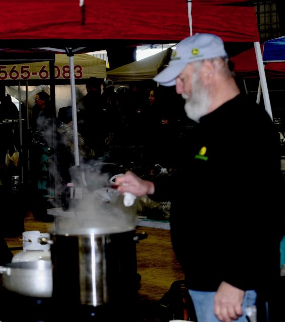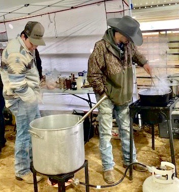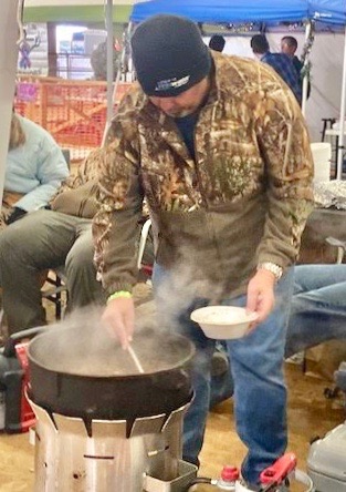 Marks said that despite the weather conditions, he was happy with the overall event turnout that included competition costs for cooking teams, door prizes, gift cards and auction items as well as trophies for parka-attired chefs who hovered over creations simmering in either traditional blackpots or other types of metal cookware.