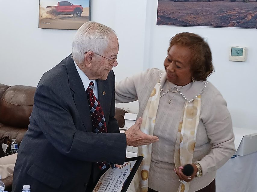 “After the war people were waiting for cars. I had to learn how to be a salesman, but I learned that the important part in sales is to find out what people want to buy. After I learned that, selling wasn’t a problem,” Roy told the crowd.