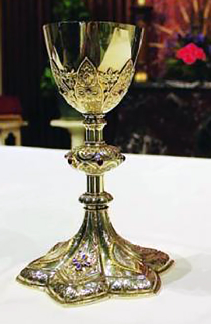 Father Beekman used the chalice every day when he said Daily Mass. Several years ago, he received a phone call from Rev. Tom Voorhies, pastor at Sacred Heart Catholic Church in Ville Platte, LA. The two priests had become friends when Father Beekman was in Louisiana. During the phone call, Father Beekman asked Father Voorhies if he wanted the chalice, and he told him no, he was just checking in with a friend. Although Father Beekman felt at some time the chalice should be brought back to Louisiana, he was not ready to let it go, at least not yet, so he did not offer to return it.