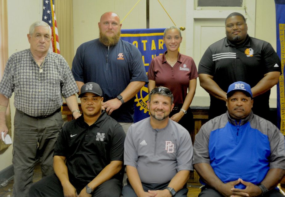 Coaches from Northwest, North Central, Beau Chene, Port Barre and Opelousas high schools described the status of their programs and answered questions asked by members during a noon Opelousas Rotary Club meeting.