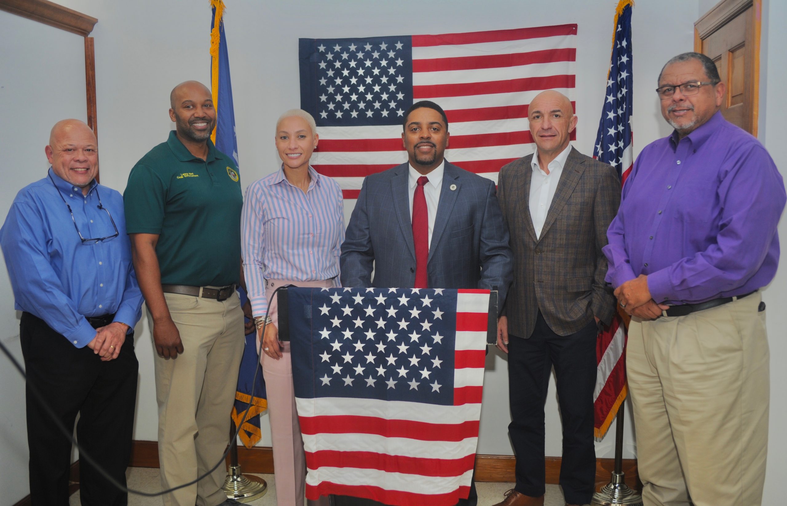 Miller hosted a press conference that included parish, city and board members of the state Housing Corporation at his Opelousas office to announce the roof program that will continue taking applications from prospective home owners through Nov. 21.