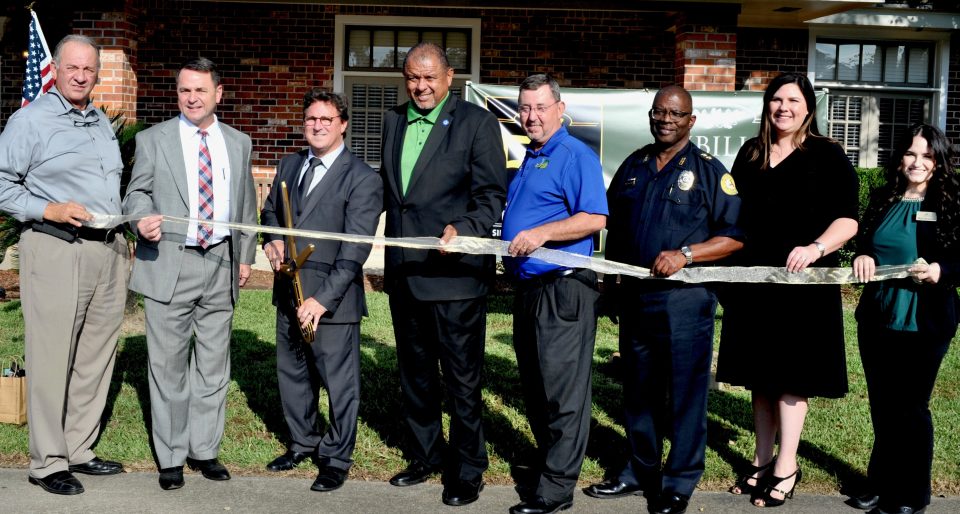 Wendy and Lowell Sibille stand next to portraits of his parents who started Sibille Funeral Home. The business celebrated its 50th anniversary on Thursday with an open house and ribbon cutting attended by well wishers from throughout St. Landry Parish.