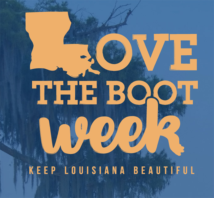 Love the Boot Week, April 17-23, 2023, is Louisiana’s Largest Litter Cleanup Organized by Keep Louisiana Beautiful. It is held in conjunction with Earth Week, April 17-23, 2023. Love the Boot Week is supported by the Office of the state’s Lieutenant Governor.