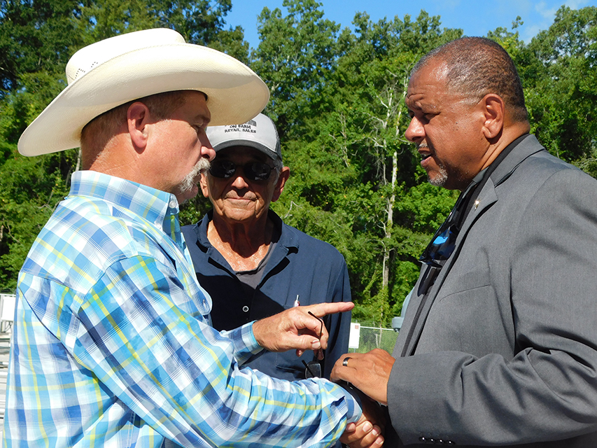 Photograph: Bill Rodier CEO of the St. Landry Parish Economic Development District explains the important of the new water treatment plant located off Interstate 49 south of Opelousas. (Photograph by Bobby Ardoin.)