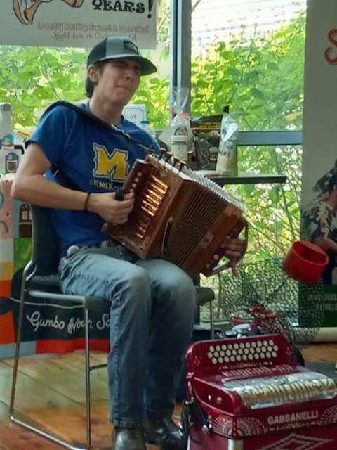 “He was supposed to be cleaning up in there, but he started playing the harmonica and then the accordion and now the fiddle. I know he’s  worked with Steve Riley, Jeffrey Broussard and Cedric Watson,” Palumbo said.