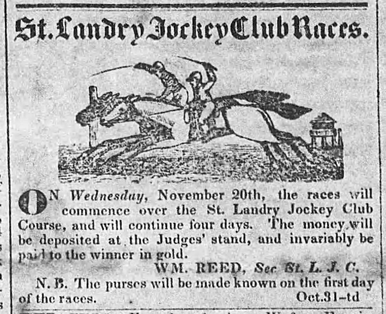 Middle: 1844 advertisement for the St. Landry Jockey Club Course in the Opelousas Whig newspaper.
