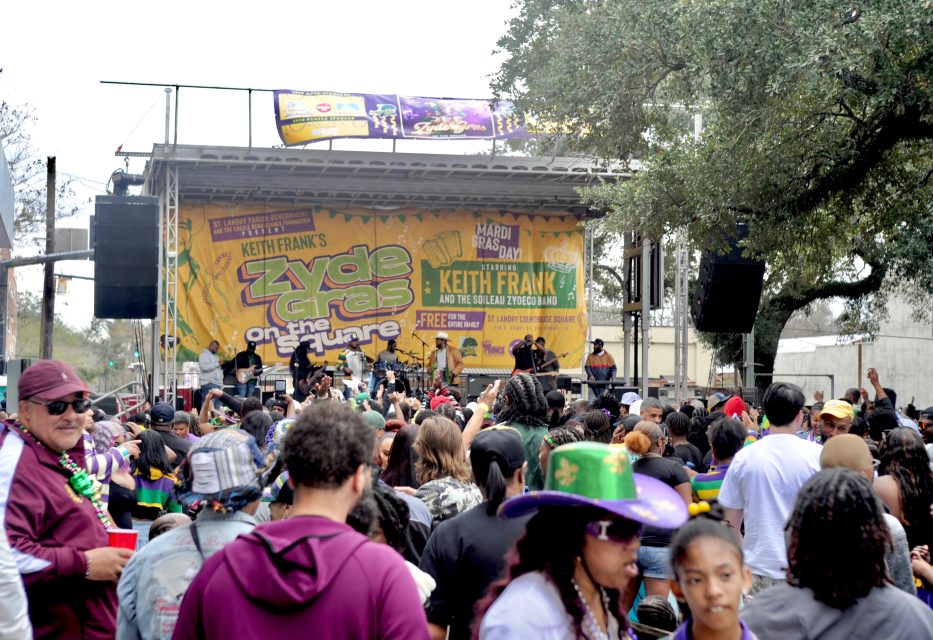 Zyde Gras On The Square drew close to 1500 Mardi Gras revelers to the courthouse square to pass a good time and dance to the Zydeco sounds of Keith Frank and the Soileau Zydeco Band. This Mardi Gras event was sponsored by the St. Landry Parish Government.